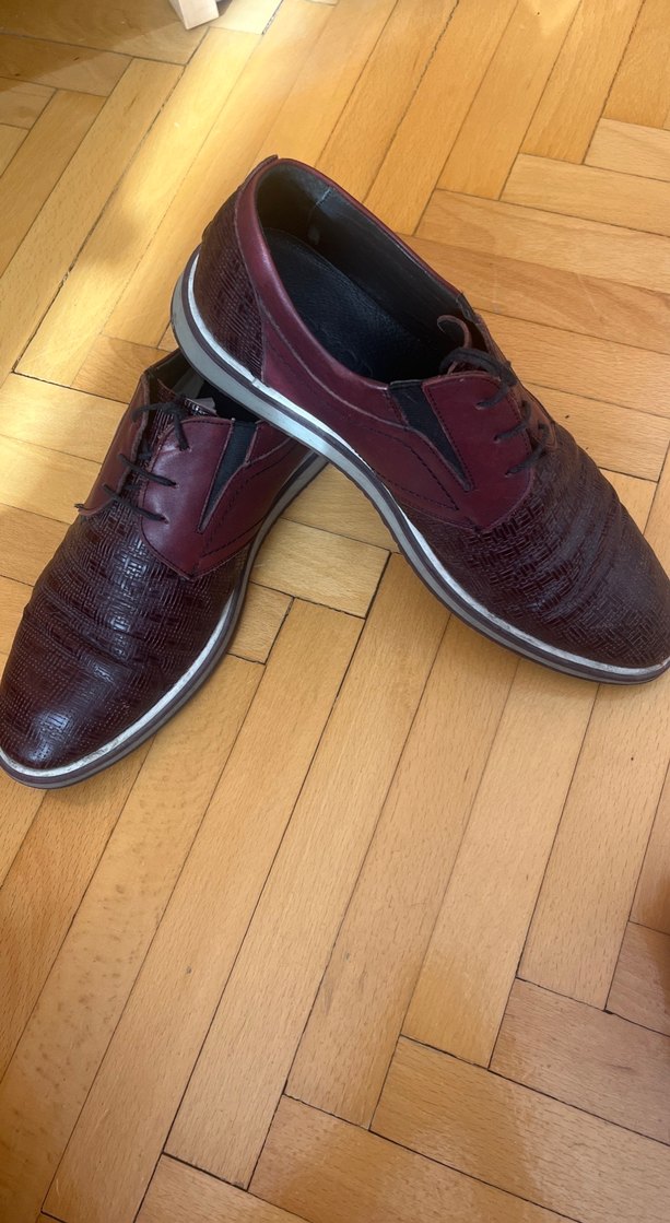 Koyu bordo renkli, deri yılan desenli, bağcıklı erkek klasik ayakkabısı, günlük kullanım için uygun, çağdaş sokak stiline uyum sağlar.