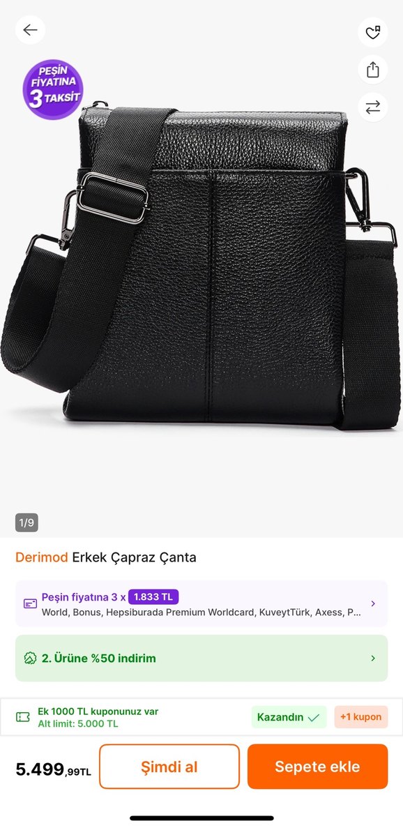 Eşim aldı ancak dışarıda hiç kullanmadı. Satıcısında güncel fiyatı 5499 tl. Elden çıkarmak için uygun fiyattan satıyorum. ( siyah, kapaklı ve tokalı erkek omuz çantası, ayarlanabilir kayışıyla modern ve minimalist bir tarz sunar)