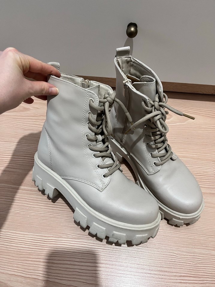 En fazla 3 defa kullanmışımdır hiçbir deformesi yoktur temizleyip göndereceğim. Deichmann dan alındı Günlük sokak stiline uygun, bej deri platform topuklu bağcıklı kadın botları. Kalın tabanlı ve desensiz tasarım sunar.