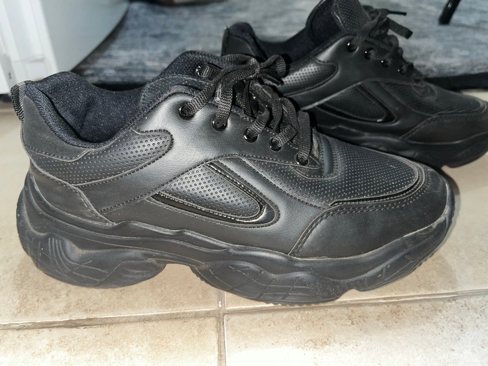 Kadınlar için siyah, bağcıklı ve platform topuklu kauçuk spor ayakkabılar. Spor ve sokak tarzı için uygun, trend görünümlü. Derimod’un 38 numara rahat 2 kere giyildi tertemiz sıfır gibi bir kusuru yok.