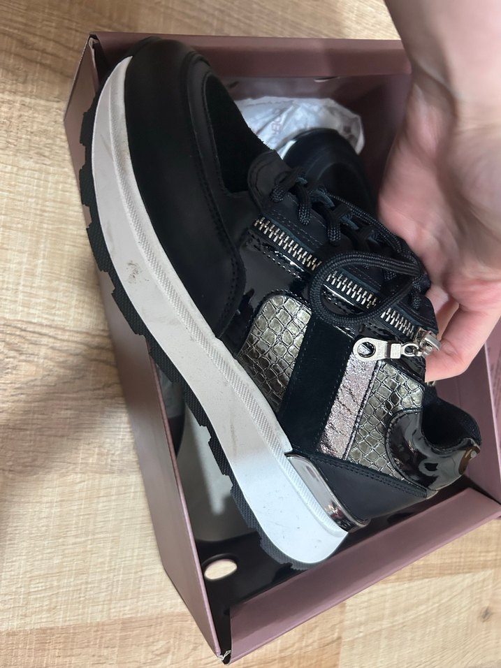 bKadınlar için platform topuklu, fermuarlı ve kauçuk malzemeden yapılmış siyah yılan desenli spor ayakkabılar. Günlük kullanım için uygun, trend sokak stiliyle uyumlu. #fermuarlı #sneaker #derimod #kalıntabanlı