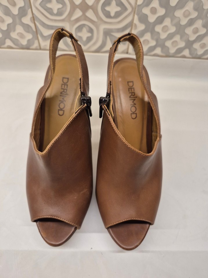 DERIMOD Kahverengi Deri Kadın Topuklu Ayakkabı