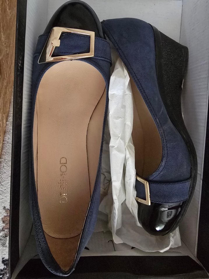 Ürün çok çok az ve temiz kullanılmıştır. TAHMİNİ topuk boyu 4-5 cm'dir. Lacivert süet malzemeden, toka detaylı kadın ayakkabı.