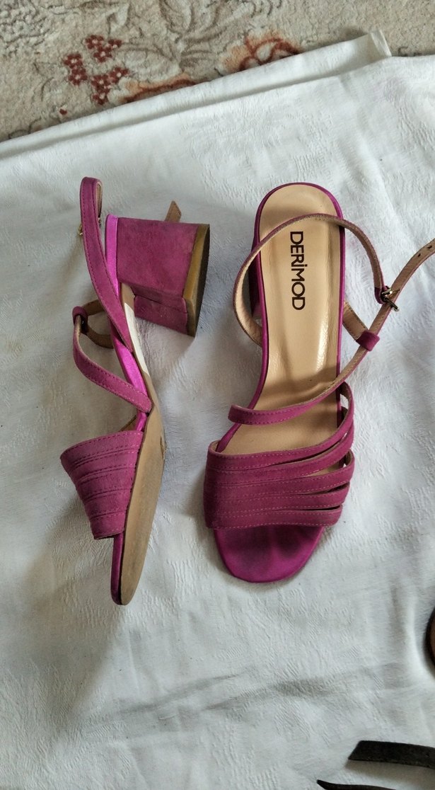 DERIMOD Pembe Süet Tokalı Topuklu Ayakkabı