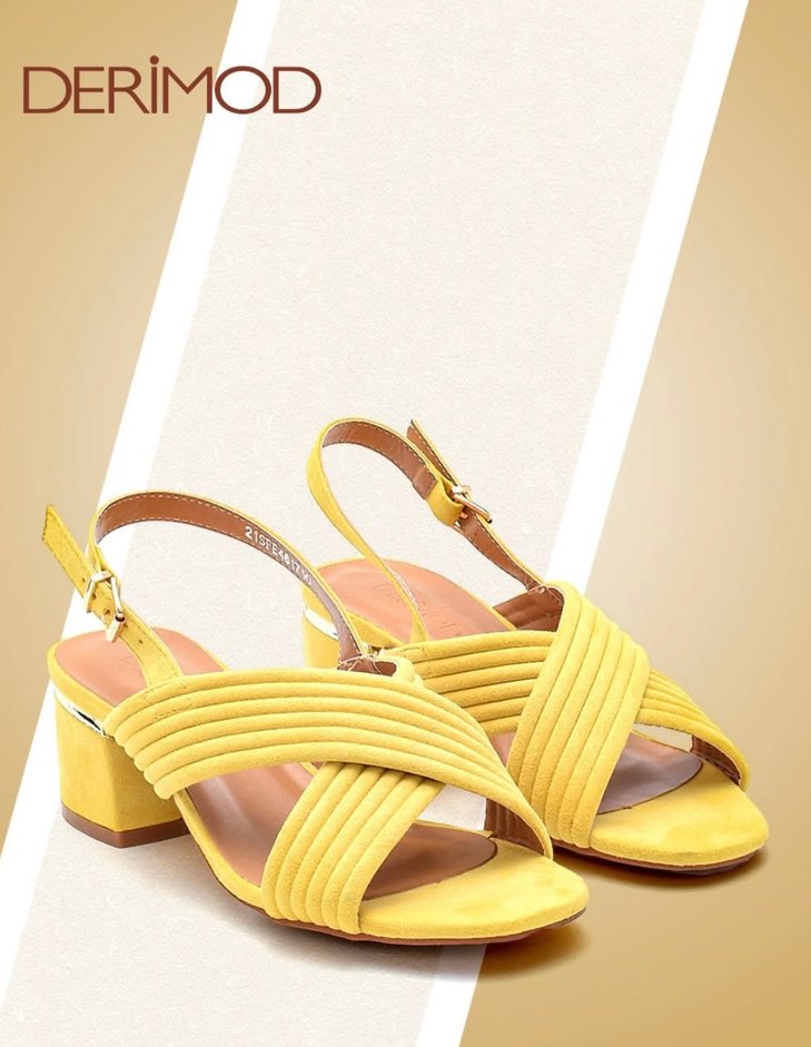 Derimod, pilili bantlı ve blok topuklu sarı süet sandalet. Topuk boyu 5.5 cm. Sayılı kullanıldı. İç tabanında hafif soyulmalar var. #derimod #süet