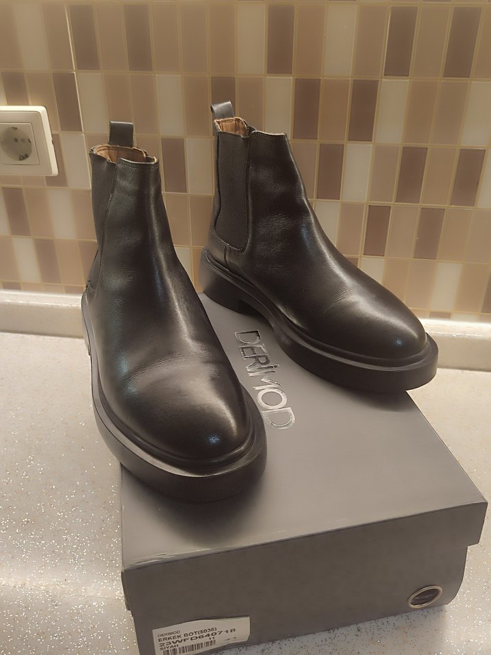 DERİMOD Siyah deri erkek Chelsea bot ayağımdan ameliyat oldugum için fakat ilandaki ayakkabıları ve botları hiç kullanmadım hepsi kutulu faturalı bot derimod magazada 6 7 bin tl ihtiyacı olan hiç durmasın.