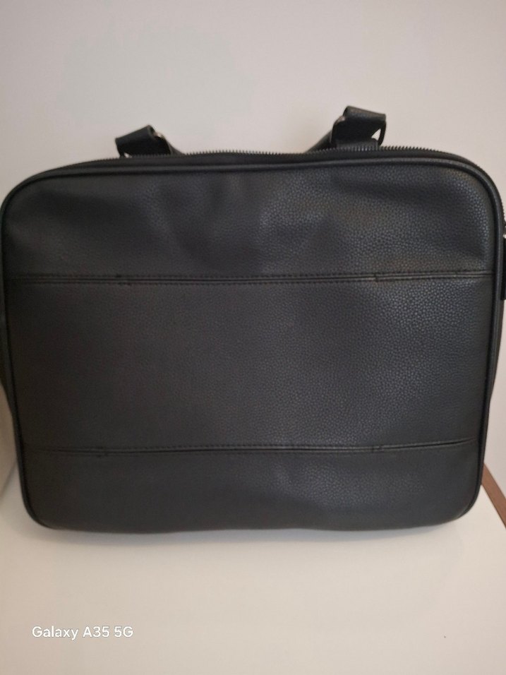 Siyah deri evrak çantası, fermuarlı ve ofis için uygun sade, çağdaş tasarıma sahiptir. Desensiz ve iş ortamları için pratiktir,kardeşim bir iki kez kullandım, beklemekten yıpranmalar olmuş fotoğraflarda görünüyor.