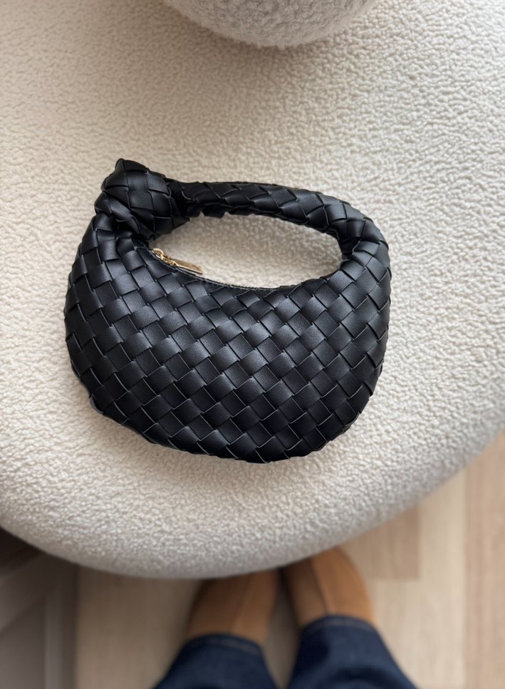 Ürün sadece çekim için 1-2 kez kullanıldı Siyah deri, örgü desenli ve tokalı kadın el çantasıdır. Minimalist ve trend sokak stiline uygun, günlük kullanıma uygundur.