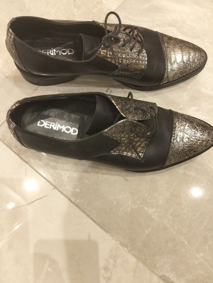 DERIMOD marka, siyah yılan derisi desenli, kadın ayakkabısı, ofis kullanımı için uygundur. Çok az kullanildi