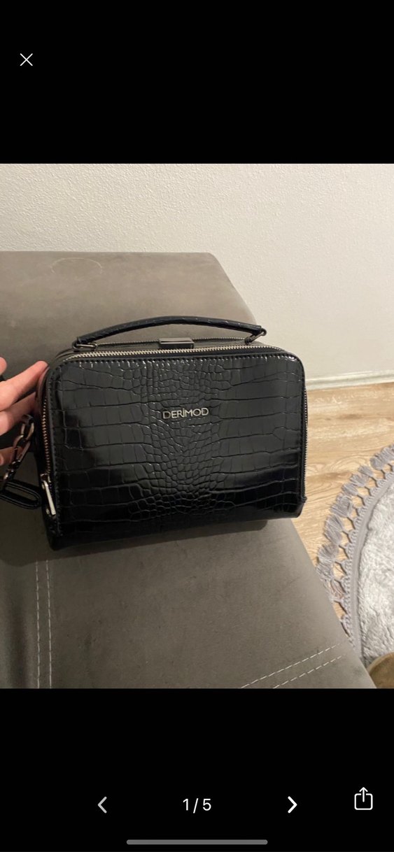 DERIMOD marka siyah yılan desenli deri çanta, fermuarlı ve günlük kullanım için uygundur, trend ve gotik tarzda.