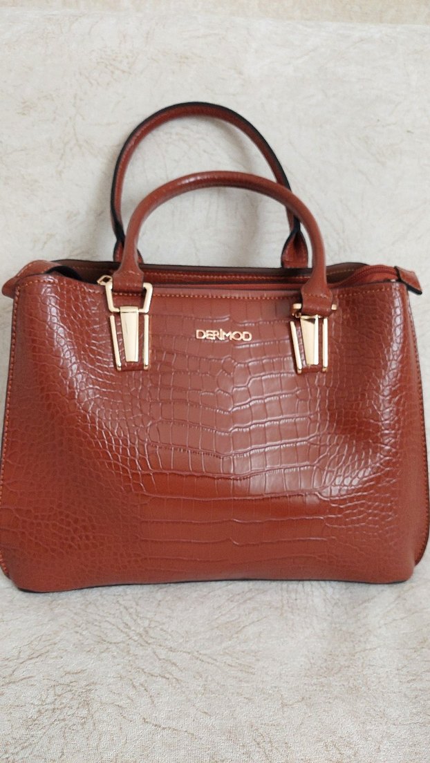 Derimod taba rengi Krokodil Desenli Kadın Çanta.HİÇ KULLANILMADI