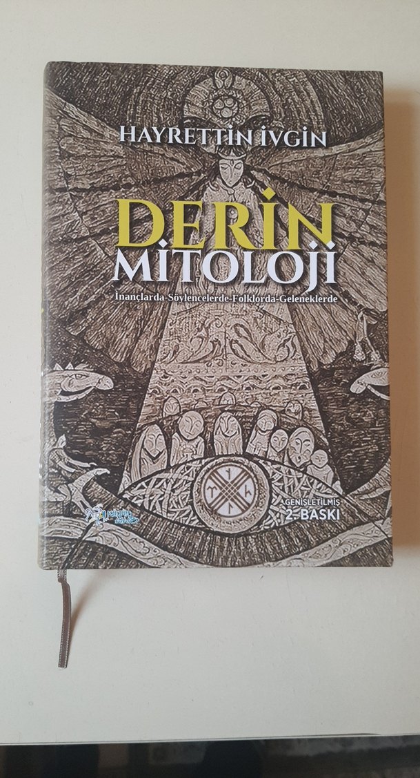 Hayrettin İvgin'in "Derin Mitoloji" kitabı, inançlar, mitler, folklor ve gelenekleri inceliyor. Kitap kapağında detaylı çizimler yer alıyor. Ciltli Şömizli