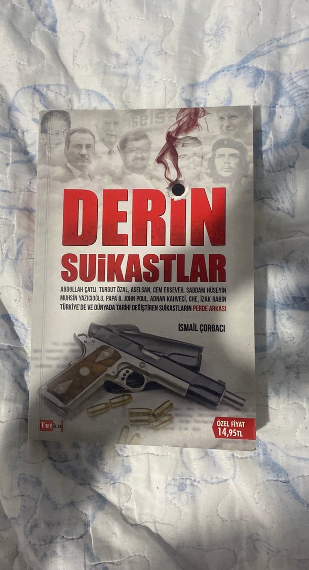 Derin Suikastlar, önemli dünya liderlerine yönelik tarihi suikastları ve arka planlarını inceliyor. Kapakta silah ve mermi görselleri yer alıyor.