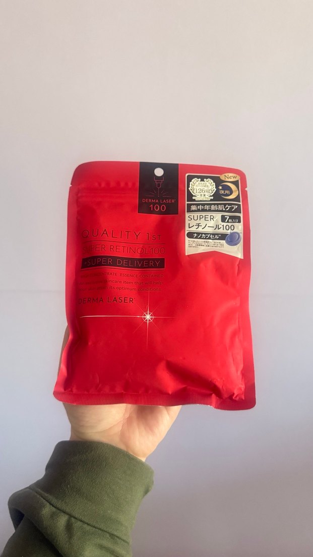 Kırmızı ambalajda Super 7 Retinol 100 yüz maskesi, cilt kalitesini artırmak için gelişmiş retinol teslimatı sağlar.