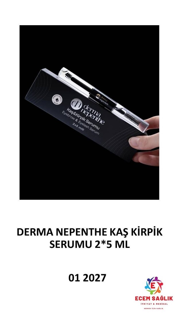Derma Nepenthe kaş ve kirpik serumu, 2 adet 5 ml'lik set halinde, kirpik ve kaşları besleyip güçlendirmek için uygundur. Koyu renk tonuna sahiptir.
