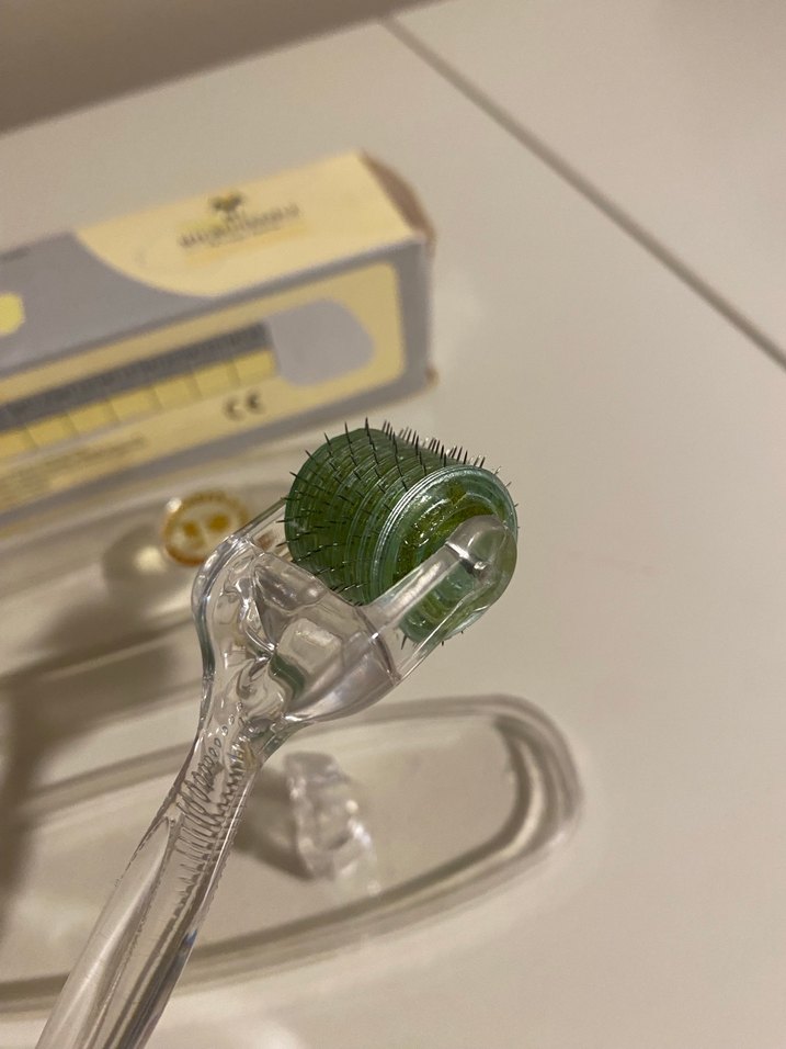 0.3 mm iğneli derma roller. Uzun zamandır çekmecede bekliyordu, hiç kullanılmadı, belki en fazla elimin üstünde bir gezdirmişimdir aldığımda ama kullandığımı hiç hatırlamıyorum. Çekmecede durduğunu fark ettim ve simdi satıyorum.