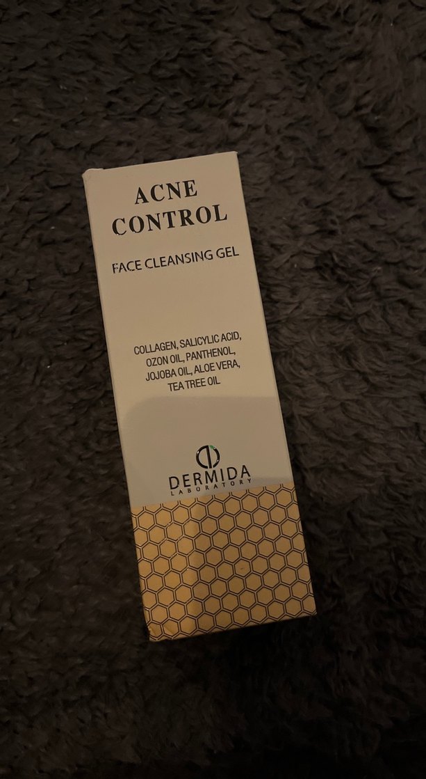 Dermida Akne Kontrol yüz temizleme jeli; kolajen, salisilik asit, ozon yağı, panthenol, jojoba yağı, aloe vera ve çay ağacı yağı içerir.