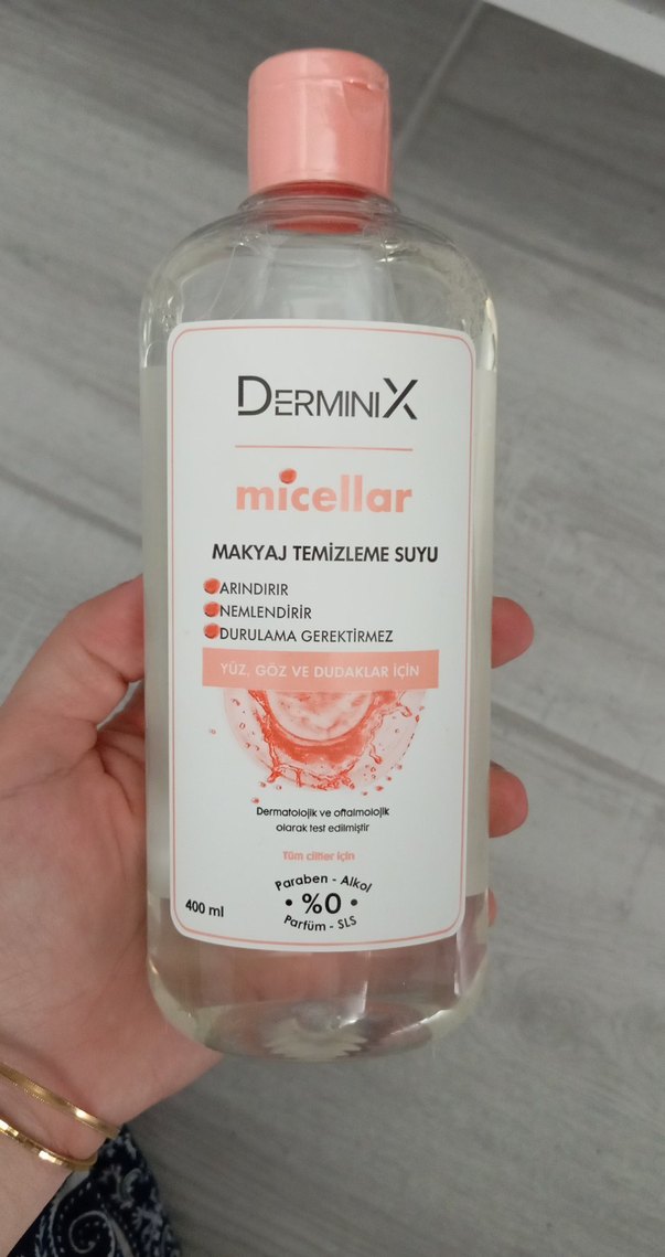 DERMINIX micellar makyaj temizleme suyu cildi arındırır, nemlendirir ve durulama gerektirmez. Yüz, göz ve dudaklar için uygundur, paraben, alkol, parfüm ve SLS içermez. Dermatolojik ve oftalmolojik testlidir.