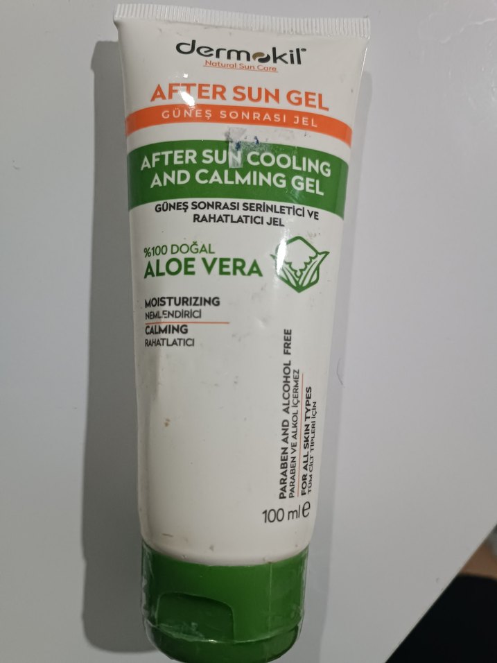 Dermokil aloe vera içeren %100 doğal güneş sonrası jel, cildi nemlendirir ve rahatlatır. Paraben ve alkol içermez, serinletici etkisi vardır.