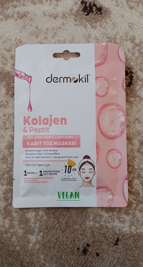 Dermokil kolajen ve peptit içeren kağıt yüz maskesi, tüm cilt tipleri için yaşlanma karşıtı ve sıkılaştırıcı etki sağlar. 10 dakikada cildi canlandırır.