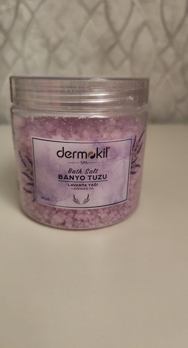 Dermokil lavanta yağlı banyo tuzu, rahatlatıcı kokusu ve yumuşak dokusuyla sakinleştirici bir banyo deneyimi sunar. Bir kaşık kadar alındı içinden