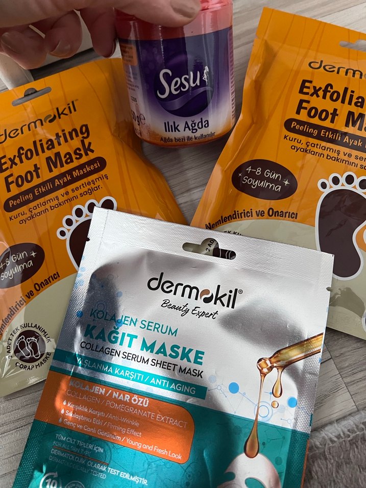 Dermokil kolajen serum kağıt maske, nar özü ile yaşlanma karşıtı etki sağlar. Peeling etkili ayak maskeleri kuru ve çatlamış cildi 4-8 gün içinde yeniler ve onarır. Sesu ağda da içerir. Tamamının fiyatıdır