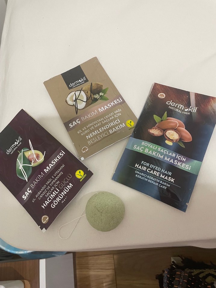 Dermokil saç bakım maskeleri, besleyici, nemlendirici ve güçlendirici formüllerle sağlıklı saçlar için, boyalı saçlara özel seçenekler içerir. 3 adettir ve yüz temizleme süngeri hediye suyla aktifleşir yumuşar