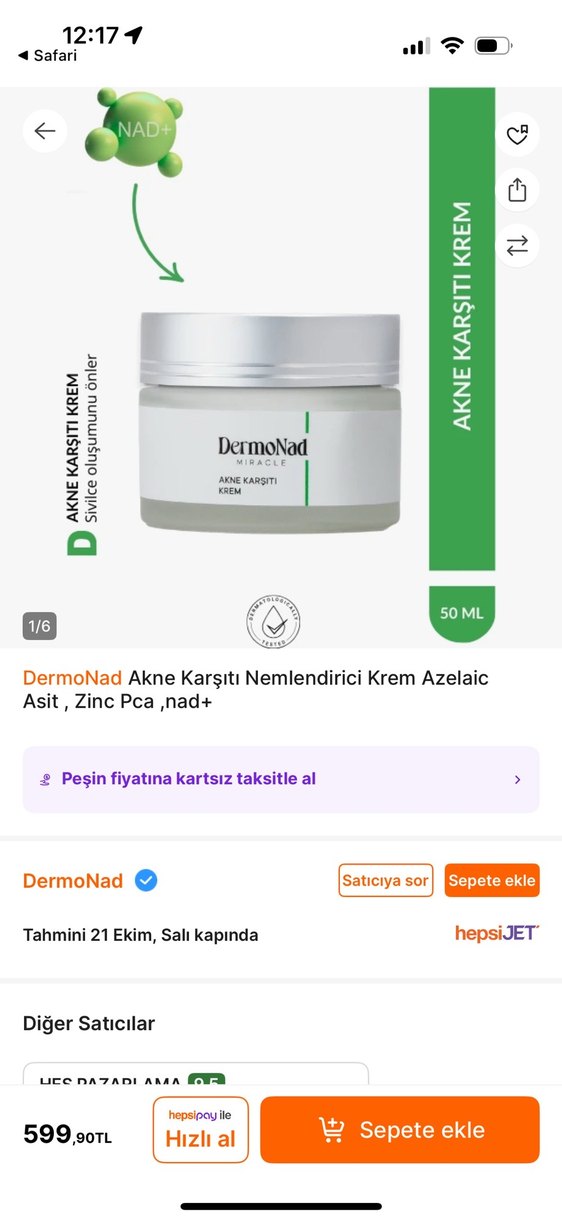 DermoNad Miracle Anti-Akne Krem, Azelaik Asit, Çinko Pca ve Nad+ ile yağ üretimini dengeler, cilt sağlığını destekler. 50 ml.
