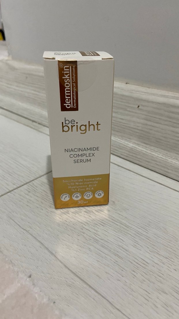 Dermoskin Be Bright Niacinamide Kompleks Serum, cildi aydınlatmaya ve nemlendirmeye yardımcı niasinamid ve hyalüronik asit içerir. 30ml şişede sunulur. ✨