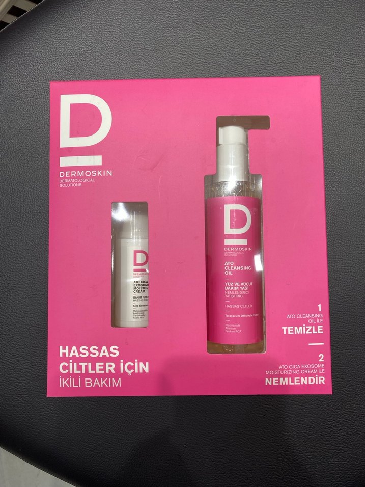 Dermoskin'in hassas ciltler için ikili bakım seti, yüz temizleme yağı ve nemlendirici krem içerir. Cildi nazikçe temizler ve nemlendirir.