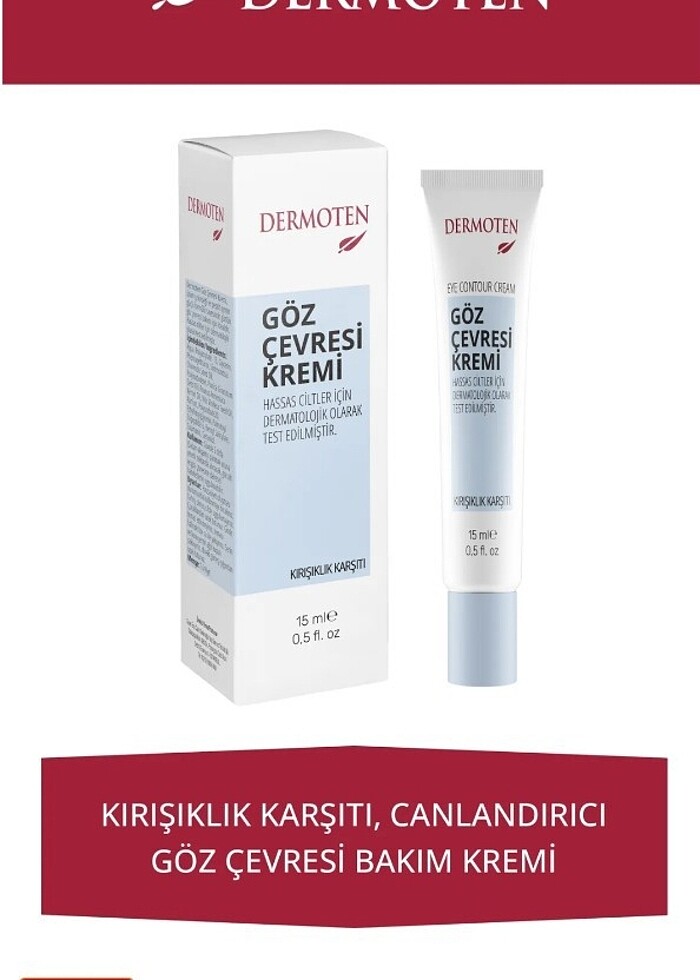 Dermoten Göz Çevresi Bakım Kremi, göz çevresinin nem ihtiyacını karşılarken, göz çevresinin canlı ve sıkı görünümünü desteklemeye yardımcı olur. Hassas ciltler için dermatolojik olarak test edilmiştir.