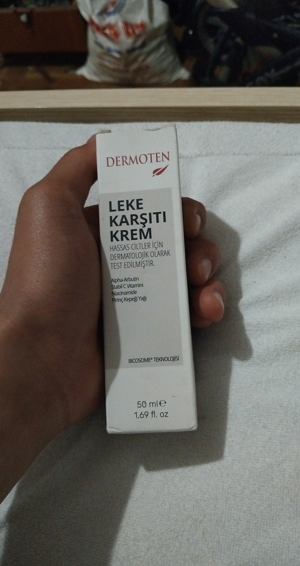 Dermoten markasına ait, hassas ciltler için dermatolojik olarak test edilmiş, leke karşıtı açık bej renkli BB krem. İçeriğinde Alfa-Arbutin, C Vitamini, Niasinamid ve Pirinç Kepeği Yağı bulunur. 50 ml.