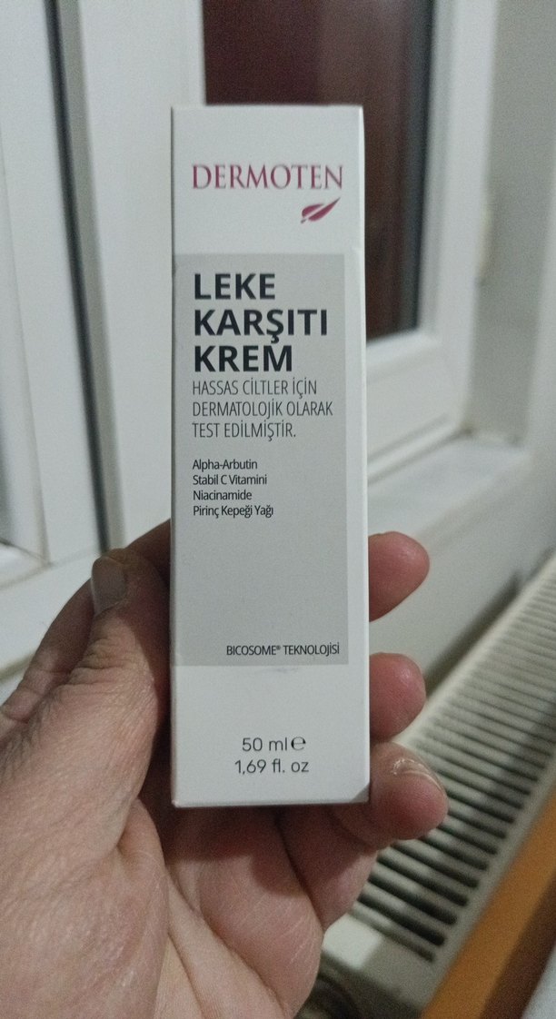 Dermoten leke karşıtı krem, niacinamide, alpha-arbutin ve pirinç kepeği yağı içerir. Hassas ciltler için dermatolojik olarak test edilmiştir. Bicosome teknolojisi kullanır.