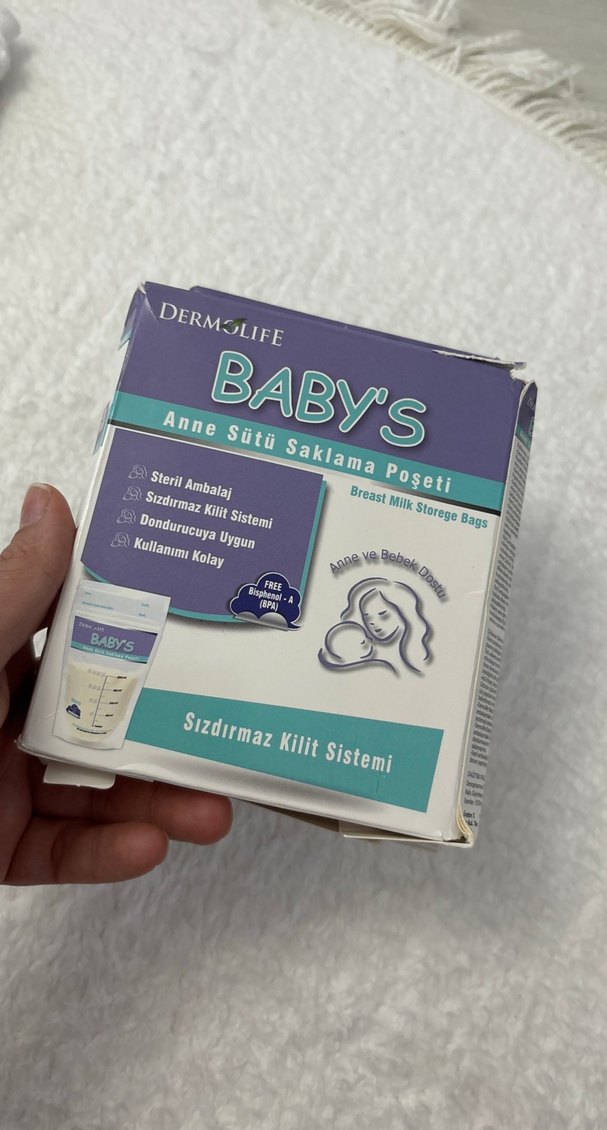 Dermslife anne sütü saklama poşetleri sızdırmaz kilit sistemi ile steril ambalajda, dondurucuya uygun ve kullanımı kolaydır. 20 adet