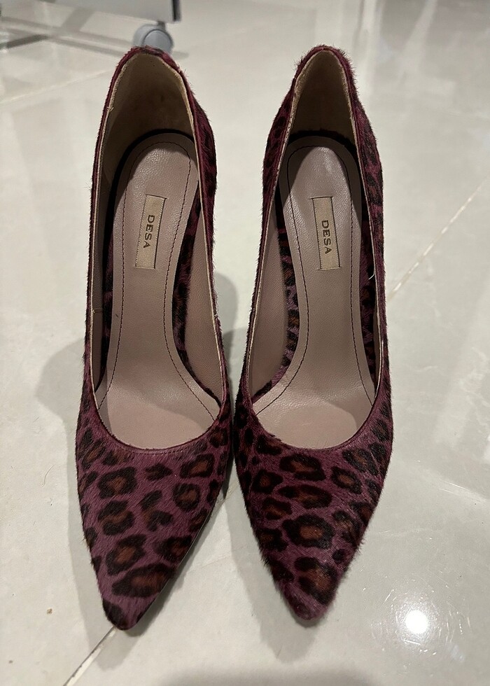 Desa deri , yeni , 39 numara , bordo siyah leopar çok şık desen ve kalitede tamamlayıcı stiletto ayakkabı