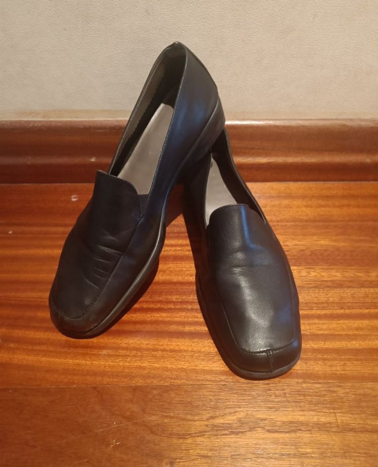 Desa marka, siyah renkli, gerçek deri malzemeden yapılmış, tokalı ve kalın topuklu klasik kadın ayakkabısı. Ofis kullanımı için uygun, geleneksel tarzda.