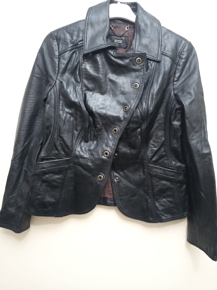 Ön kapanış detaylarıyla siyah deri biker ceket, ofis kullanımı için uygun normal boy ve regular kesime sahiptir.ürün kullanılmamış beklemiş üründür.