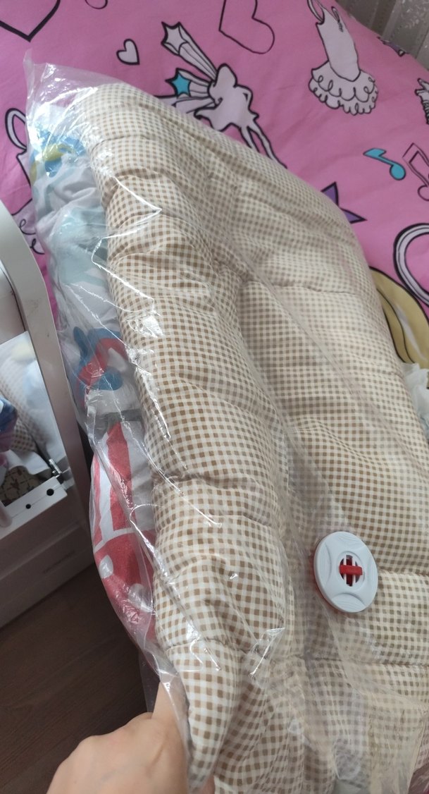 Açık kahverengi, desenli yorgan seti içinde 3 tane yorgan var