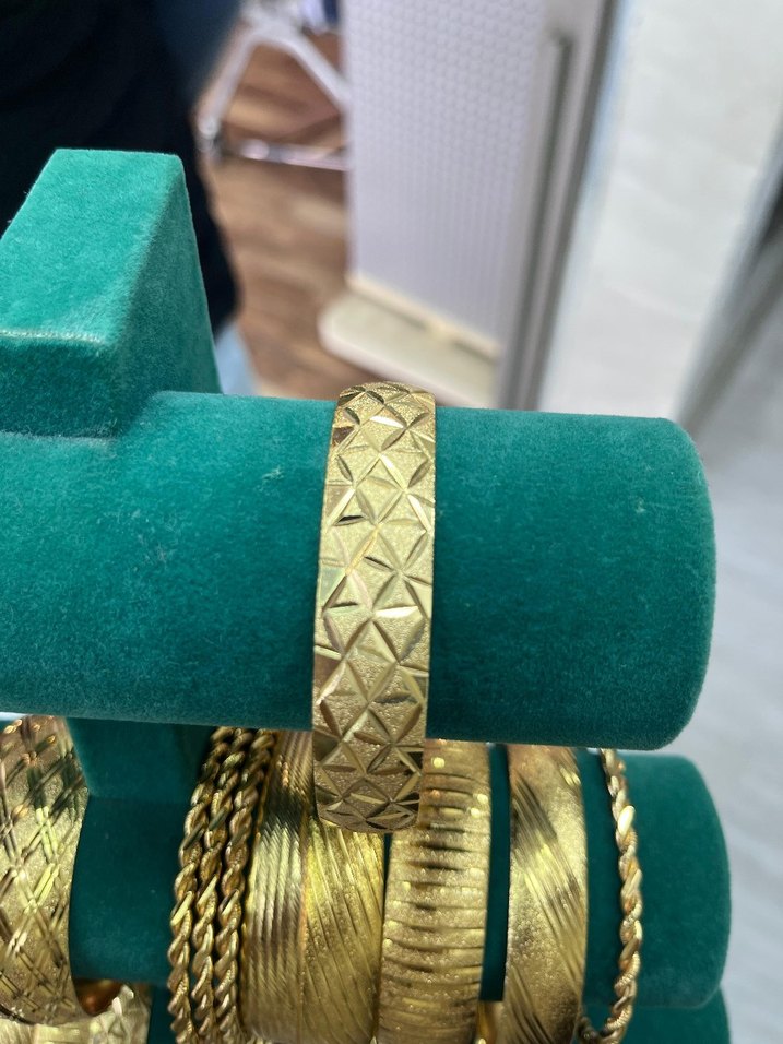 Parlak altın kaplama, desenli ve tokalı bohem tarz bileklik, vintage havasıyla düğünler için uygun. ✨