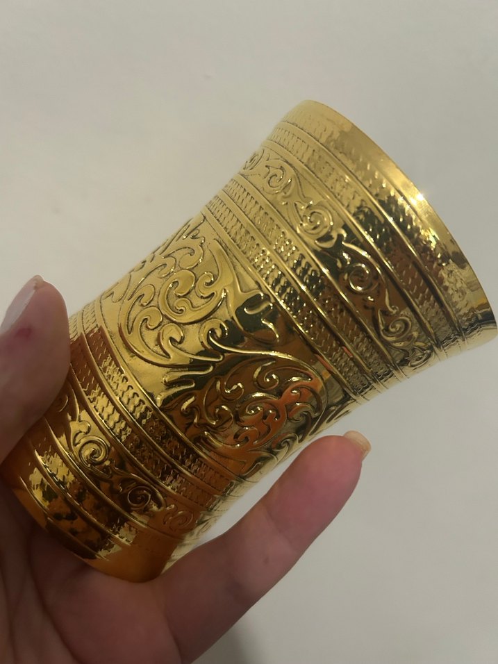 Parlak altın renkli bu bilezik, desenli işlemeler ve püskül detaylarıyla bohem tarzını yansıtır, düğünler için uygundur. ✨