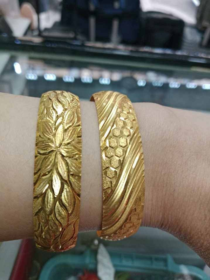 Desenli, parlak altın renkli, kadın bileziği pirinç kaplama olup kararma SOLMA YAPMAZ 22 AYAR altın bilezik le uyumludur dügünlerde gündelik kulanıma uygundur 1 adet fiyatıdır ✨