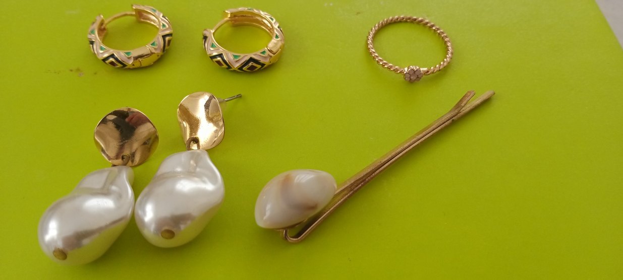 Desenli Altın Renkli Boncuklu küpe yüzük