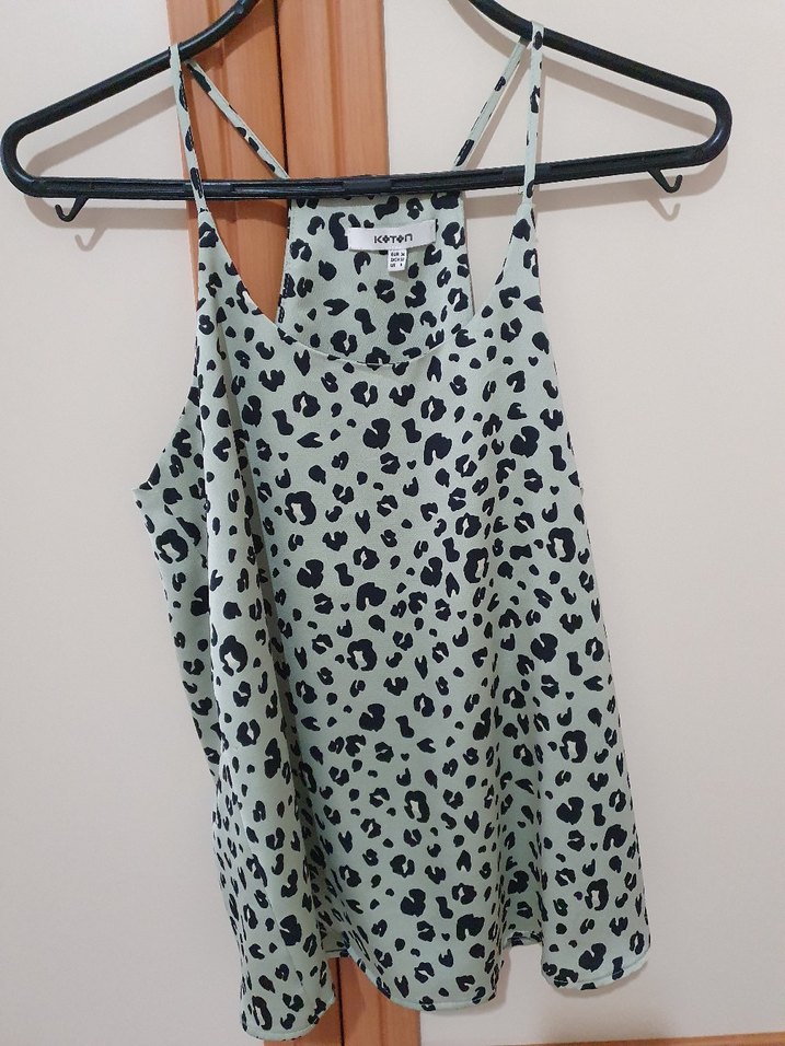 Yeşil leopar desenli bluz, sadece 1 kez giyildi