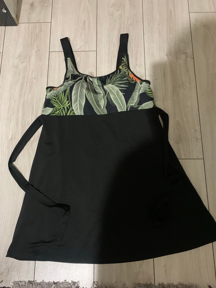 Desenli yaprak desenli üst kısmı ve siyah etek kısmıyla mayo sadece etiketi yok mükemmel