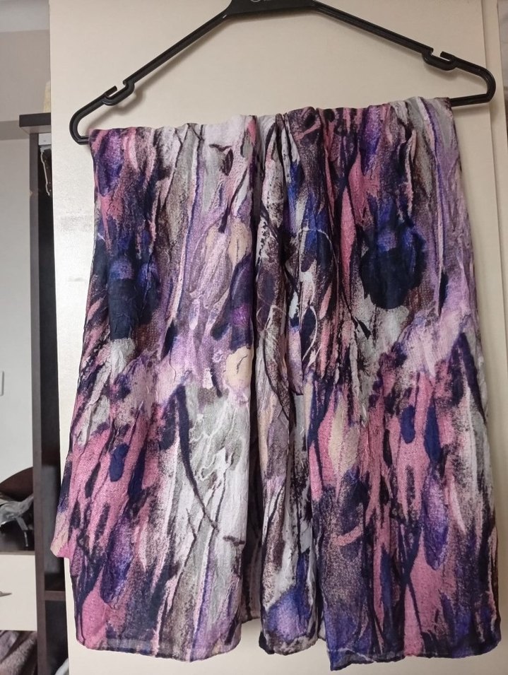 Mor tonlarında bohem desenli, dökümlü kadın şalı, yumuşak sentetik kumaştan üretilmiştir. Modakaşmir markalı yeni etiketli bir ürün