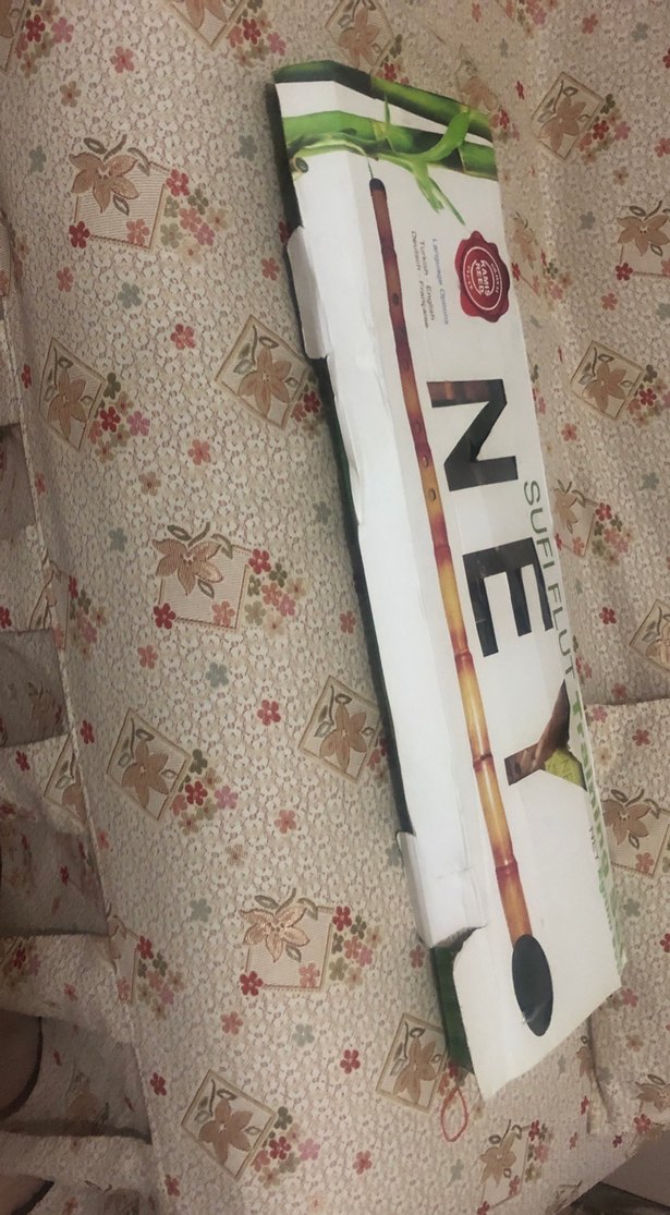 Desenli, açık bej renkli Ney Müzik aleti ., Kitapçıkları da içinde hepsi eksiksiz kutusunda . Meraklıları için çok güzel ve özel bir enstrüman♀️