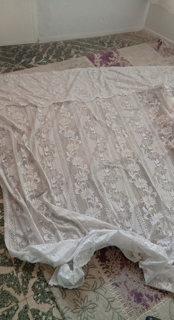 Beyaz ve gri tonlarda çiçek desenli, klasik görünümlü perde. üst küpür detaylı sadece 15 gün kullandım yepyeni en 2 metre 6 cm boy 2 metre 27 cm