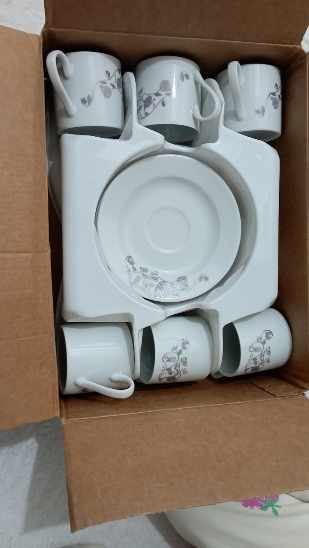 Desenli Beyaz Porselen Kahve Fincanı Seti