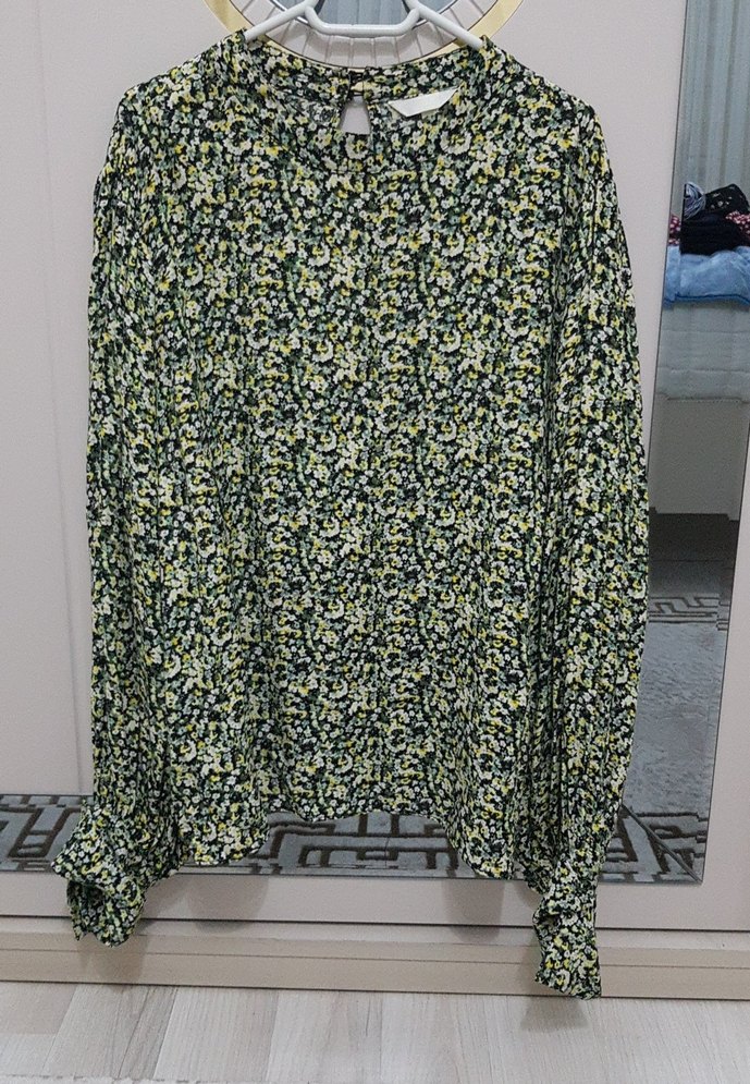desenli bluz, bol kollu duble manşet arkasi düğmeli