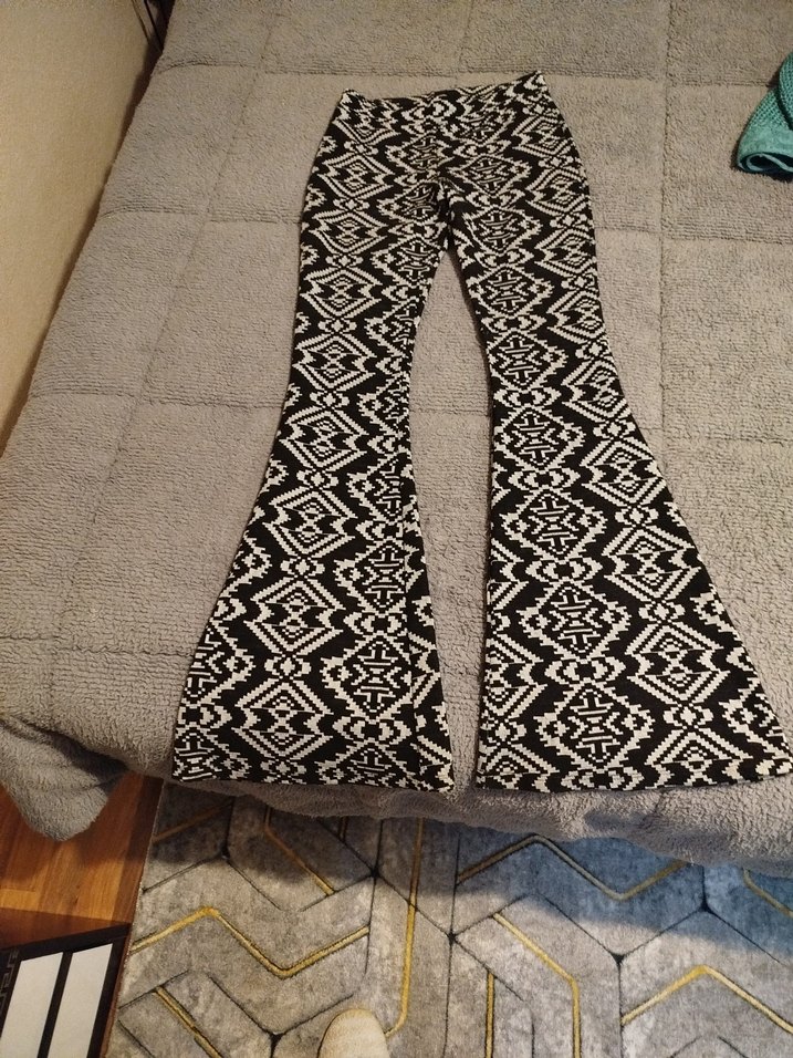 Desenli Bohem Örgü İspanyol Paça Pantolon